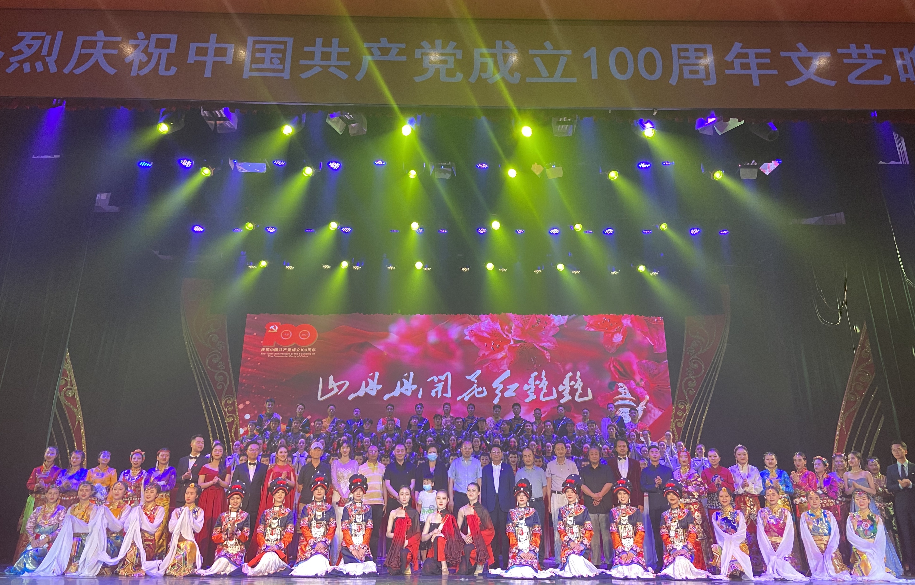 红旗飘扬、歌声嘹亮……6月19日晚,庆祝中国共产党建党100周年“山丹丹开花红艳艳”大型音乐舞蹈晚会在成都艺术职业大学艺术宫举行。晚会涵盖了独唱、合唱、群舞等多种艺术形式,其中还包含了多个曾参与央视春晚,或荣获全国大学生艺术节金奖等众多业内大奖的优秀作品。
