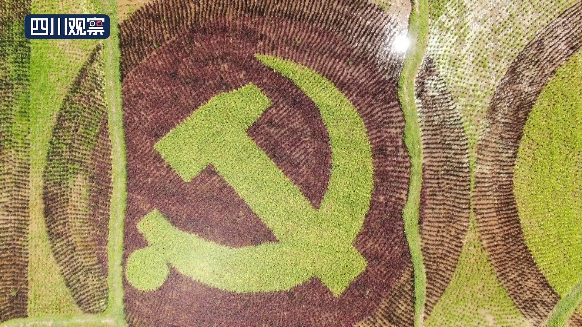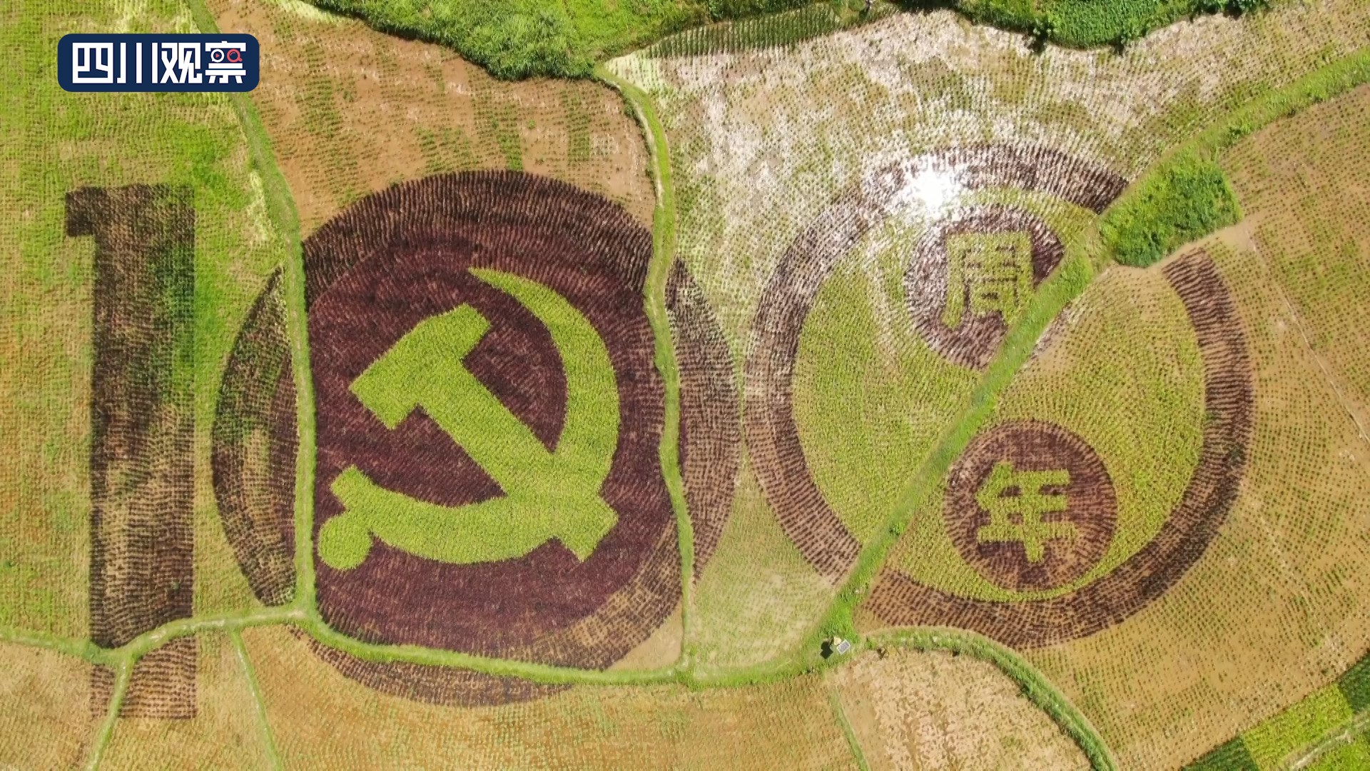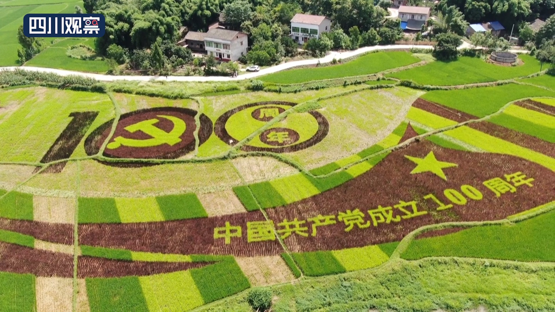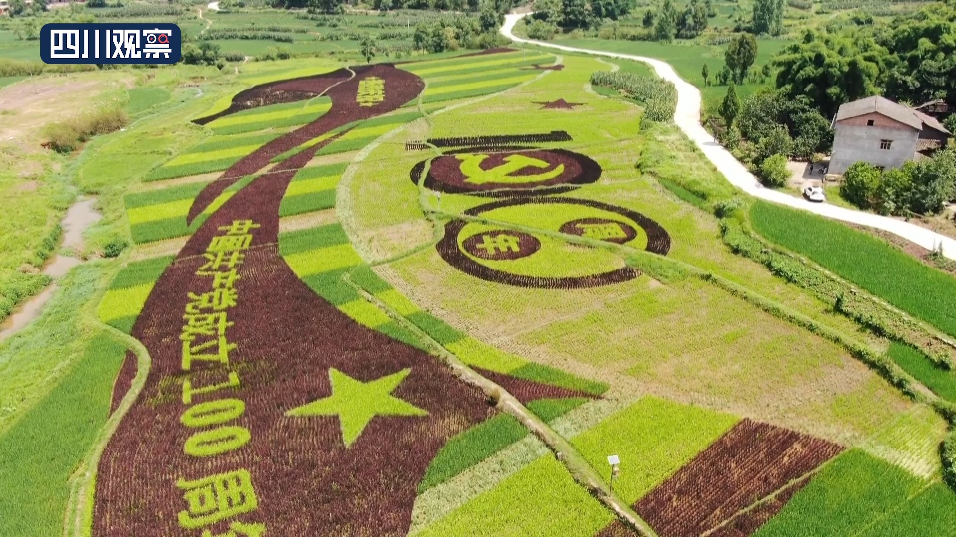 百年砥砺奋进,百年光辉历程,随着七一临近,广安各界纷纷以多种形式庆祝中国共产党成立100周年。在广安区彭家乡茶店村,当地以稻田为画卷,用彩色水稻绘制出党徽、100周年等巨幅图样,以一副美丽的乡村画卷向建党百年献礼。