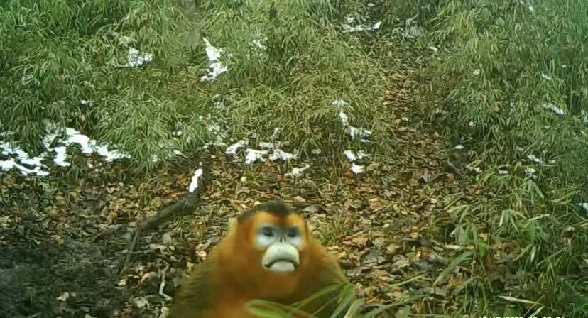 大熊猫国家公园蜂桶寨片区科研人员表示,“川金丝猴主要以植物的嫩茎叶为食,是典型的树栖动物,能够被拍到树下吃播的画面实属罕见。”