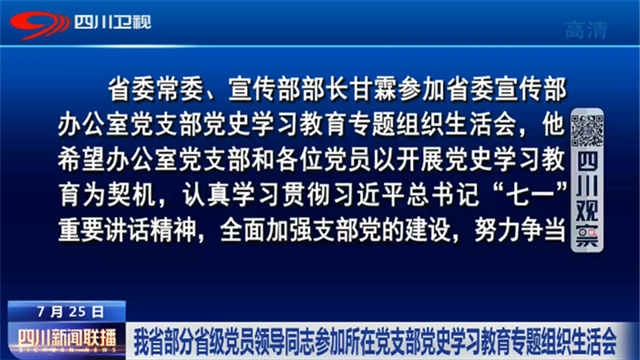 省委常委、宣传部部长甘霖参加省委宣传部办公室党支部党史学习教育专题组织生活会,他希望办公室党支部和各位党员以开展党史学习教育为契机,认真学习贯彻习近平总书记“七一”重要讲话精神,全面加强支部党的建设,努力争当做到“两个维护”的表率,努力争当践行“四力”的表率,努力争当高质量服务的表率,努力争当支部建设的表率,守正创新做好宣传思想文化工作,更好地承担起举旗帜、聚民心、育新人、兴文化、展形象的使命任务。