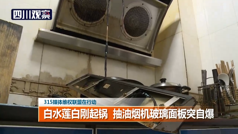 3·15媒体维权联盟在行动⑬白水莲白刚起锅 抽油烟机玻璃面板突自爆
